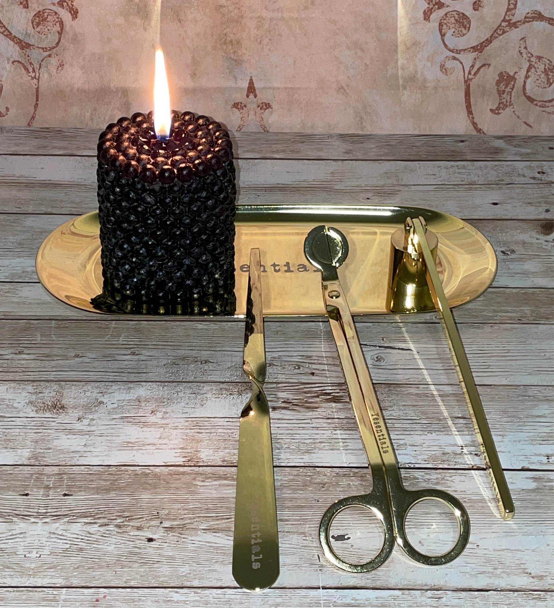 4 in 1 Candle Accessory Set- Candle Wick Trimmer, Candle Wick Dipper, Candle Wick Snuffer, Storage Tray Plate, Candle Care Tools Gift for Candle Lover